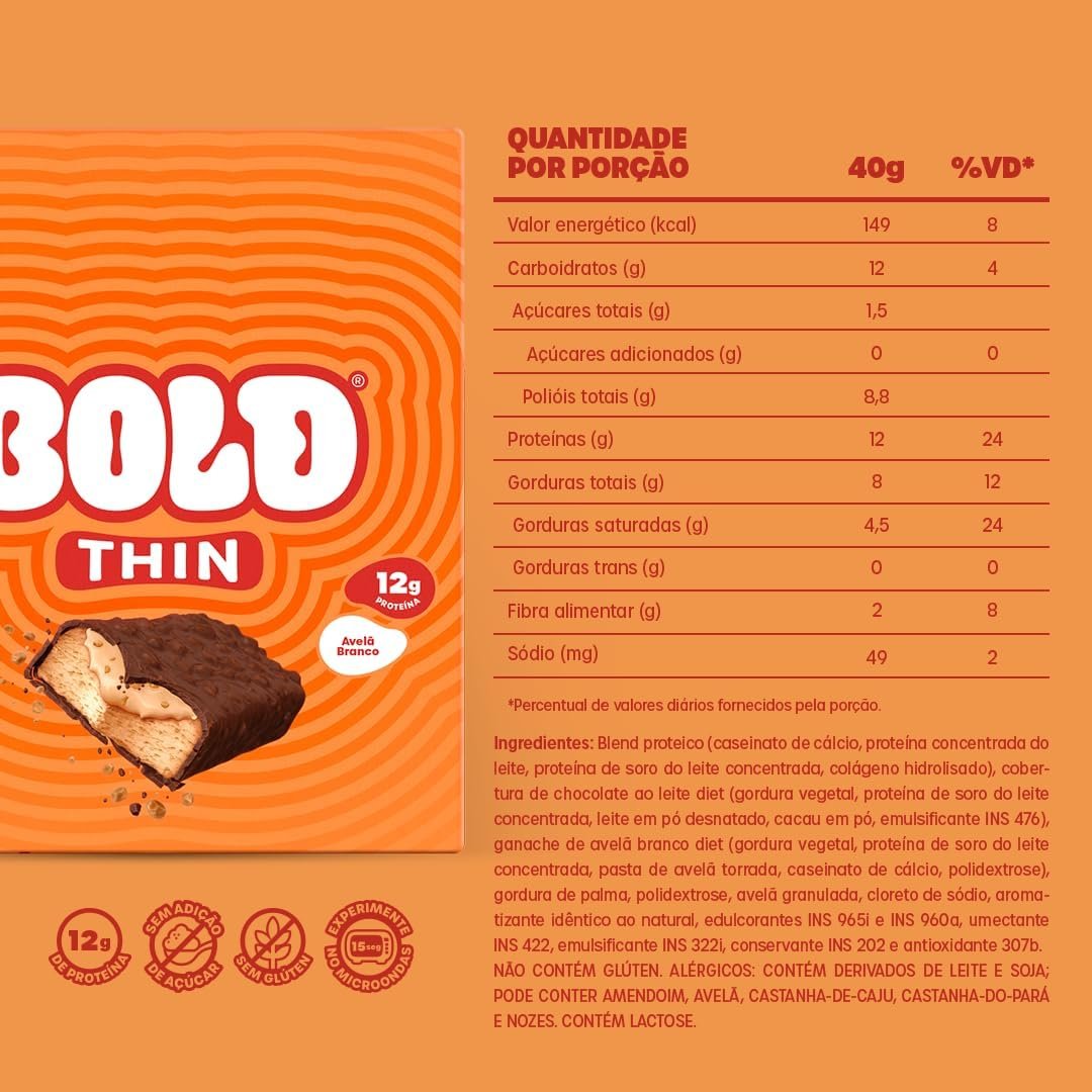 Barra de Proteína Thin Avelã Branco (12g de Proteína) – Bold