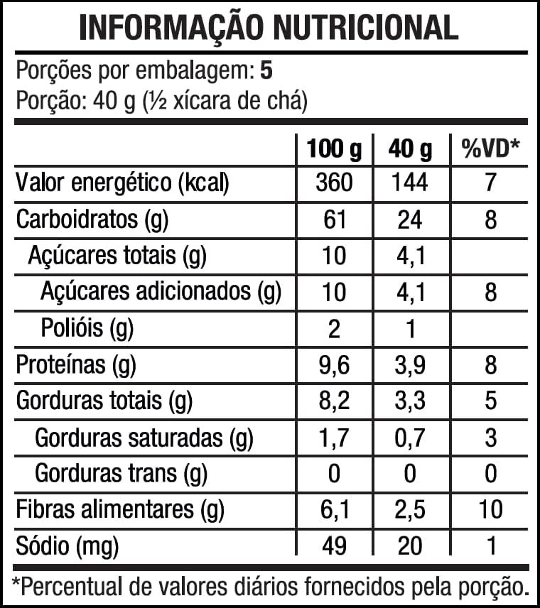 A Granola Sem Glúten Sabores do Campo possui 200 g e é perfeita para pessoas que valorizam uma alimentação saudável e desejam saborear um produto delicioso e nutritivo sem gastar muito.