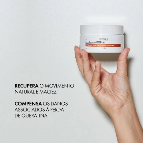 Seu cabelo está pedindo socorro? Após químicas, colorações ou o uso constante de secador e chapinha, é comum que os fios fiquem rígidos, porosos, quebradiços e sem vida. Isso acontece porque o cabelo perde sua matéria mais essencial: a queratina. Para resgatar a saúde e a beleza dos seus fios, a Vichy desenvolveu um tratamento de choque com tecnologia profissional: a Máscara Concentrada Antirrigidez Dercos Kera-Solutions.