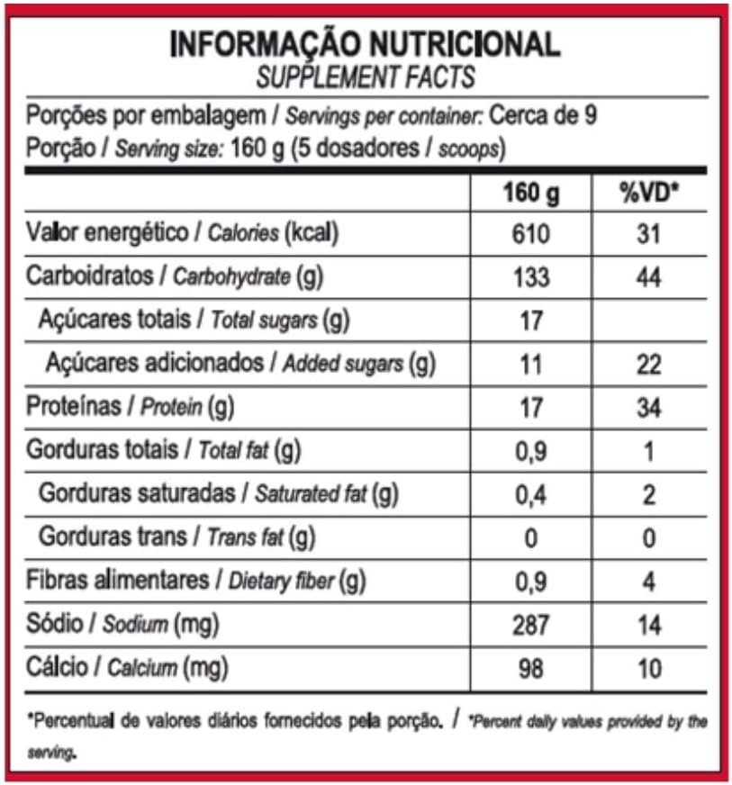 Maltodextrina, Proteína Concentrada do Soro do Leite (WPC), Albumina (clara de ovo desidratada), Colágeno (Proteína Hidrolisada), Cacau em pó, Aroma Idêntico ao Natural de Cacau com Baunilha, Antiumectante fosfato tricálcico, Edulcorantes: Ciclamato de Sódio e Sacarina Sódica. NÃO CONTÉM GLÚTEN.