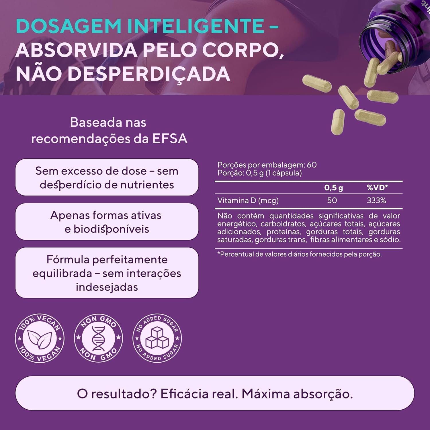 - ✅ FÓRMULA COM DOSE ADEQUADA – Cada cápsula contém 2000 IU de Vitamina D3, dentro das recomendações.