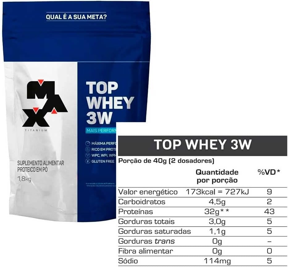 Top Whey 3W + Performance Refil 1 8Kg Baunilha V01 – Max Titanium